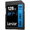 Designed for point-and-shoot cameras, mid-range DSLR cameras, and HD camcorders, the 128GB High-Performance 800x PRO UHS-I SDHC Memory Card (BLUE Series) from Lexar features a storage capacity of 128GB and takes advantage of the UHS-I bus to let you quickly capture and transfer Full HD and 3D video as well as raw and JPEG captures. This card can achieve maximum read speeds of up to 150 MB/s and, thanks to its V10 speed class rating, minimum write speeds are guaranteed not to drop below 10 MB/s.