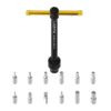 The machined-aluminum design features a removable handle, enabling it to pack up small, and an integrated magnet holds tool bits securely in place. Comes in a soft-shell carrying case.