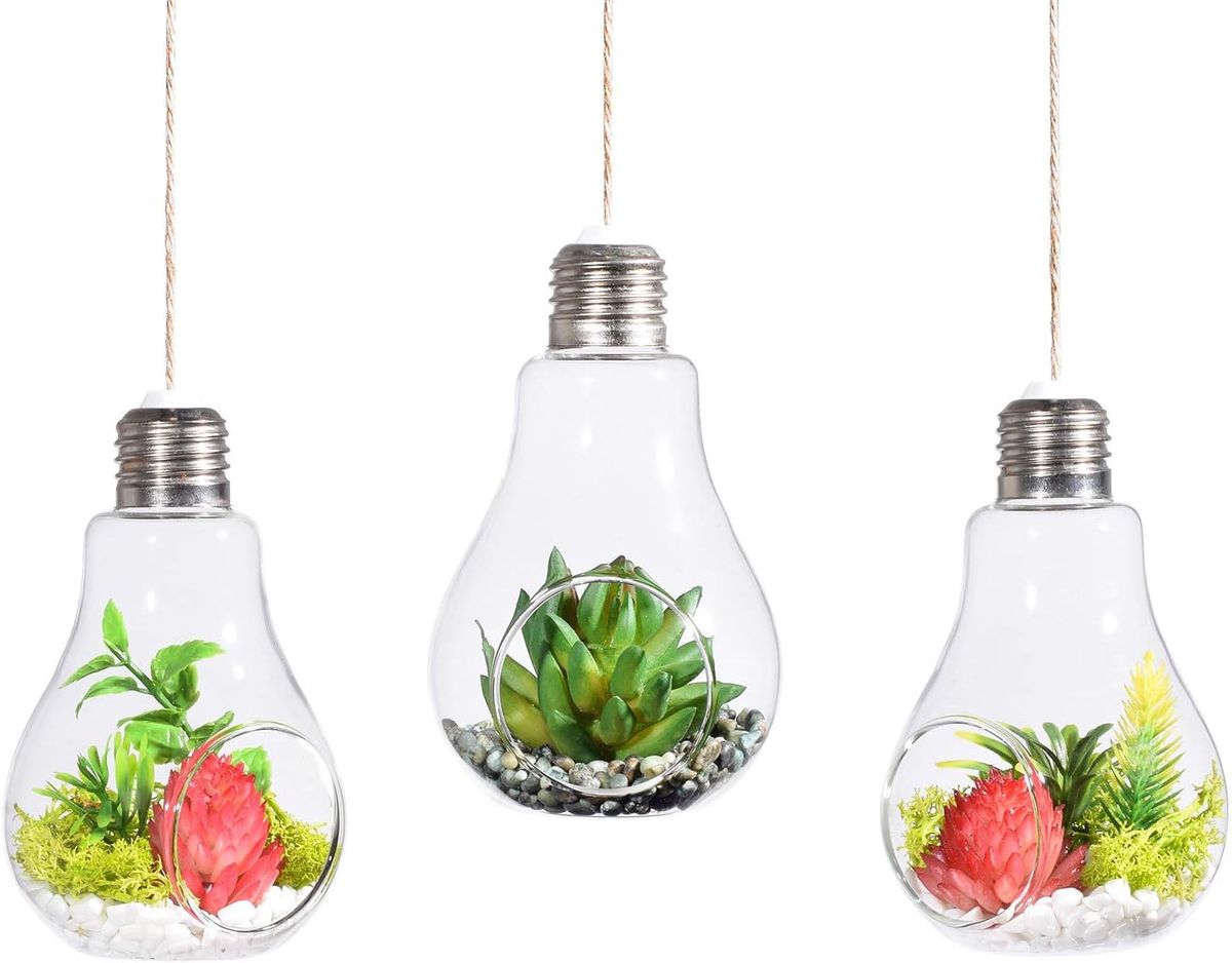 1 x Light Bulb Shaped Terrarium Hanging Glass Planter for Succulent – Set of 3