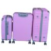 Light pink ABS suitcase, spinner wheels luggage, hard shell luggage, 3-piece luggage set, chevron pattern suitcase, durable travel luggage, GAILY luggage, stylish suitcase, telescoping handle suitcase, pink suitcase, hard shell suitcase, airport travel luggage, modern luggage set, carry-on suitcase, secure suitcase, easy mobility luggage.