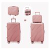 4 PIECE LUGGAGE SET Includes 14inch and 20 inch carry on, 24 inch checked and 28 inch trunk luggage. To cater to all your travel needs. The suitcases nest inside each other, which makes sense for shipping, but also helps with storage.