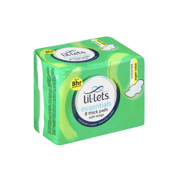 Lil-Lets Essentials Winged Pads Unscented 8 Pads offer you quality and protection with side wings for extra security against leaks, leaving you feeling confident and comfortable. Each pad is individually wrapped.