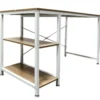The Linx Iowa Oak Desk combines modern design elements of wood and metal, catering to current market trends with its sleek and functional build. Crafted from melamine and steel, it offers a blend of durability and contemporary style ideal for any home office setting.