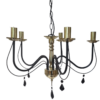 Black 5 Light Chandelier with Black Hanging Crystals and Polished Brass Column and Lampholder Sleeves