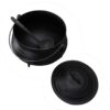 This set includes a well-fitted cast iron lid and carrying handle, 2 stoneware serving bowls, and a heavy-duty silicon ladle.