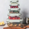 The LocknLock Nestopia 5 Piece Set, is the perfect solution for all your food storage needs. This set includes three containers of varying sizes that are designed to nest inside each other, making them easy to store when not in use. The containers are made from high-quality, Bisphenol A (BPA) free plastic and feature LocknLockâs patented 4-hinge locking system, which creates an airtight and watertight seal to keep your food fresh for longer. The Nestopia containers are also dishwasher and microwave safe, allowing you to reheat your food quickly and easily, and to clean, just pop them into the dishwasher, simple as.