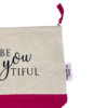 This make-up bag features a charming pink panel and is adorned with the empowering phrase “Be You Tiful” to remind you of your unique and beautiful self. Black print