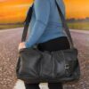 Luvsa LS-SEN10 Full Grain Genuine Leather 54L Overnight Travel Bag – Black