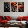 Luxury Coral Red Reef 3 Piece Abstract Canvas Wall Art Decor