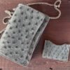 – Made from genuine full grain sky grey (grey/blue) ostrich leather;