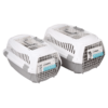 These carriers have a door on the top and in the front. The top door allows for easier loading of your pet into the carrier. The doors are made of metal and close securely, each with a double lock. The handle on the top allows for comfortable carrying. The 4 side clips ensure that the carriers are securely fastened together. These carriers are ideal for transporting your pet in the car.