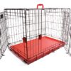 Sold flat packed in a box, easy to assemble at home. Plastic sliding bottom drawer and anti slip features. Perfect for traveling, or use at home and easy to fold. Wire crate can be stored in a small area when not in use, folded back to its original flat size. The wire crate has 2 doors, making getting your animal in and out of the cage much easier. Easy to carry handle included. 91 x 58 x 63 cm.