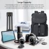Capacity: Holds 1 DSLR camera + 6 lenses + tripod + 15.6″” laptop + iPAD + water bottle + cell phone + accessories.