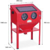 The MAC AFRIC 220-liter Sand Blast Cabinet on Stand is a heavy-duty sandblaster designed for efficiently removing rust, corrosion, and paint from large parts. It features a robust steel construction with a single door on the right side and a transparent glass viewing window. This enclosed cabinet effectively contains dust and debris, ensuring a cleaner work environment.