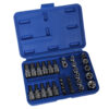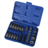 A frequent favourite of the automotive industry when dealing with nuts and bolts, this 34 piece 3/8â drive star and bit socket set contains various socket, bit and bit extension sizes. Included in the set is 11 sockets, 10 drive bits and 11 socket extensions!