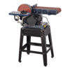 Fitted with both a disc and a belt. Disc sander has a table that can be tilted belt sanding unit can also be tilted. Comes with a stand.