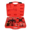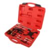 This Engine Timing Tool Kit is tailored for modern Ford and Mazda vehicles, ensuring precise timing belt adjustments and replacements. It’s compatible with various Ford models including the Fiesta/Courier (2000), Focus (1998-2000, 2004-2008) and Mondeo (2007-2008) specifically for the Ford 1.8 D/TDCI. The kit provides a comprehensive set of tools including camshaft and flywheel locking instruments, a variety of timing pins, and a camshaft sprocket removal tool.