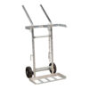 The trolley features heavy-duty steel construction with a powder-coated finish, providing durability and a professional look. Its two pneumatic wheels allow for easy maneuvering over rough terrain, while the comfortable handle ensures a secure grip and easy steering.