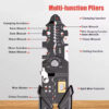 | Specifications Description | <ul> <li><strong>Versatile Functionality</strong>: Handles multiple tasks including wire stripping, cutting, clamping, crimping, and wire winding, making it an essential tool for electricians and DIY enthusiasts.</li> <li><strong>High-Quality Material</strong>: Made from CR-V high hardness steel for durability and long-lasting performance.</li> <li><strong>Ergonomic Design</strong>: Features an anti-slip handle for a secure grip and a labor-saving spring mechanism for effortless operation.</li> <li><strong>Auto-Opening Mechanism</strong>: Equipped with an auto-opening feature for convenient and quick access during tasks.</li> <li><strong>Comprehensive Tool Set</strong>: Includes multiple wrench sizes and specialized functions for a wide range of applications.</li> </ul> <h3>Functions and Specifications</h3> <ul> <li><strong>Clamping Function</strong>: Securely holds wires and components in place.</li> <li><strong>Wire Stripping Function</strong>: Precisely strips wires for clean and accurate connections.</li> <li><strong>Cutting Function</strong>: Cuts wires efficiently and cleanly.</li> <li><strong>Crimp Function</strong>: Crimps terminals and connectors securely.</li> <li><strong>Wire Winder</strong>: Facilitates easy winding of wires.</li> <li><strong>Shear Function</strong>: Shears iron wire with ease.</li> <li><strong>Wrench Sizes</strong>: <ul> <li>4mm, 5mm, 7mm, 8mm, 10mm, 13mm, 14mm</li> </ul> </li> <li><strong>Additional Features</strong>: <ul> <li>Split Wire Function for branching lines</li> <li>Adjustable screw for calibration</li> </ul> </li> </ul> |