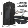 The garment bag has two large breathable mesh pockets in the bottom to store your accessories for your garment – the zippered shoe bag can save you time when searching for matching accessories, such as shoes, shirts, ties, bags, gowns, scarves. The simple design of the storage bag includes reinforced zippers and inlaid plastic for hangers, which also provides an extra layer of protection against dust.