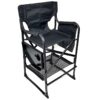 -It is made with black 630D polyester fabric and is washable and mildew resistant. As a standard feature, it has a footrest, anti-tipping leg stabilizers, two side tables that act as trays, a convenient removable brush holder storage pouch, a storage net, and an adjustable shoulder carry strap.