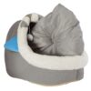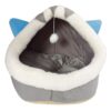 A roomy, warm & comfortable Cat Pet House with a removable washable cushioned pillow and a soft plush hanging ball.