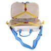 Equipped with blue smooth-rolling wheels and a sturdy pull-along strap, it makes traveling a breeze for kids. The spacious interior offers ample room for all their essentials, while the ride-on feature provides a playful way to keep them entertained during long trips.