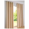 A readymade curtain lined with a polycotton lining with silver compressed eyelets.