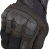 The mighty M-Pact 3 provides military and law enforcement professionals with full-coverage hand protection in the field. A dense one-piece Thermoplastic Rubber knuckle guard is anatomically designed to absorb forceful impact to the back of the hand and improve overall mobility during hard-charging operations. The outside of the thumbs and fingers are protected by 3mm EVA accordion padding, while the low-profile Thermoplastic Rubber top closure creates a secure fit to the wrist. The M-Pact 3 features internal fingertip reinforcement for extreme abrasion resistance and embossed patterning for added grip where you need it most. The two-piece palm construction reinforces high-wear areas and reduces material bunching to preserve dexterity when handling firearms.