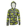 Melted camo fishing shirt hoody is manufactured from moisture management fabric.