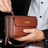 This Men Clutch Handbag features 6 Card Slots+2 Bill Compartment+2 Checkbook Compartments +2 Zipper Pocket+1 Transparent ID Window perfect to hold receipts, business cards.