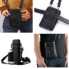 Men Casual Leather Shoulder Messenger Small Bag Flap Over Purse Father Gift – Black