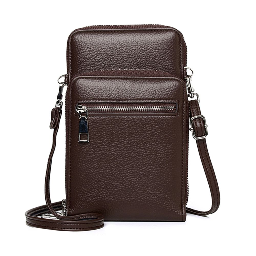 Men Crossbody Leather Messenger Bag Cellphone Holster Pouch Wallet – Brown