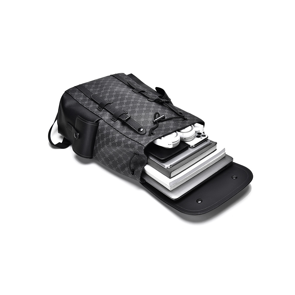 – Drawstring and Flap Closure: The top flap with a drawstring closure allows for quick and easy access to your belongings. The design not only enhances the backpack’s practicality but also adds a sleek, modern touch to its overall look.