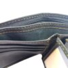 – This slim men’s leather wallet has ID windows and features beautiful bi-level contrast stitching design.