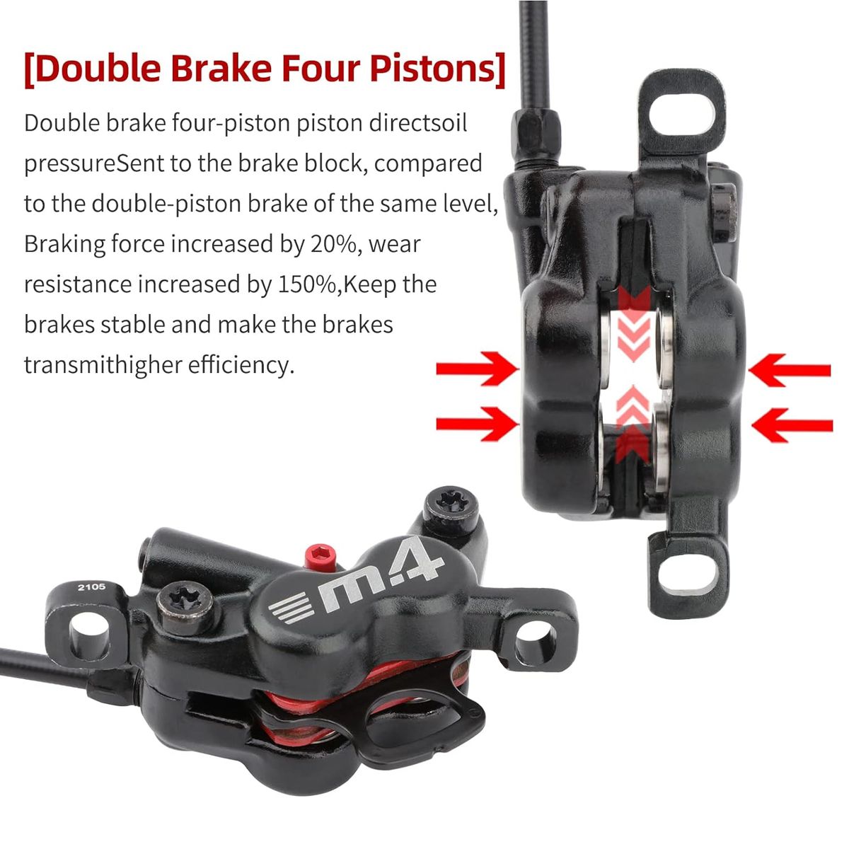 Durable: Crafted for durability, the Meroca M4 Hydraulic Brake Set boasts high-strength aluminum alloy brakes that resist damage and offer enhanced wear resistance. The resin pads not only dissipate heat effectively but also deliver superior braking performance, reducing maintenance needs. The lightweight design ensures a secure and safe riding experience.