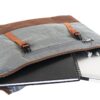 Zipped pocket at the back of messenger bag. The Messenger bag has an adjustable shoulder sling as well as a handle at back.
