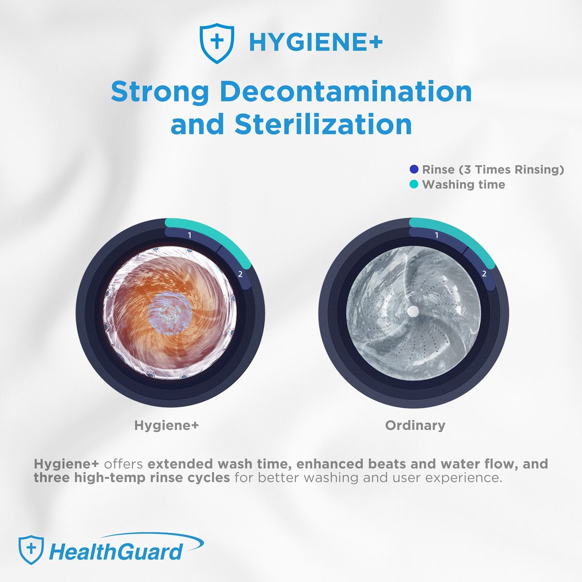 Hygiene (Strong Decontamination and Sterilization) – Based on the original program, Hygiene provides: Prolong Washing Time Enhance Washing Beats and Water Flow Three Times Rinsing (Once more)to improve the washing performance and ensure better user experience.