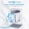 Fully Automatic Drum Clean (From Inner to Outer Drum) – Avoid secondary pollution, the water flushes between the inner and outer drums throughout the whole self-cleaning process, removing dirt and residues away to maintain a healthy washing environment.