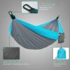 Lightweight, portable, comfortable an outdoor nylon hammock hammock chair, duplex color, soft and tear-resistant, high load-bearing, comes with a 6-ring adjustable tree straps, black diamond buckle and an integrated drawstring storage bag, outdoor travel, camping, barbecue, patio are available, multi-scene application, used for relaxation.