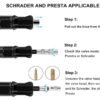 High Pressure: Max pressure 100 PSI, can easily reach 80 PSI while using. Easy to use and fast pumping, fits both Schrader and Presta valves. Secure thread-on valve connection enables a super tight seal with no air leaks and no more damaged bike tire valves. No adapters are needed!