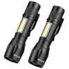 3 Light Modes: The compact flashlight has 3 light modes to meet your different need: cob high mode, COB low mode and cob strobe mode. Long press power button to the maximum brightness.