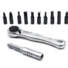 Unique mini-size low profile ratchet driver handle, only 105mm long, is perfect for tight work spaces and close quarters