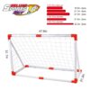 – All-in-one mini soccer goal set for kids includes a 47.6ââL x 21.3ââW x 31.1ââ soccer net, an inflatable soccer ball, an inflation pump with needle, 6 ground stakes and a detachable target goal with 5 target areas