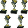 -This trophy features a black plastic base and a golden laser-cut cup design