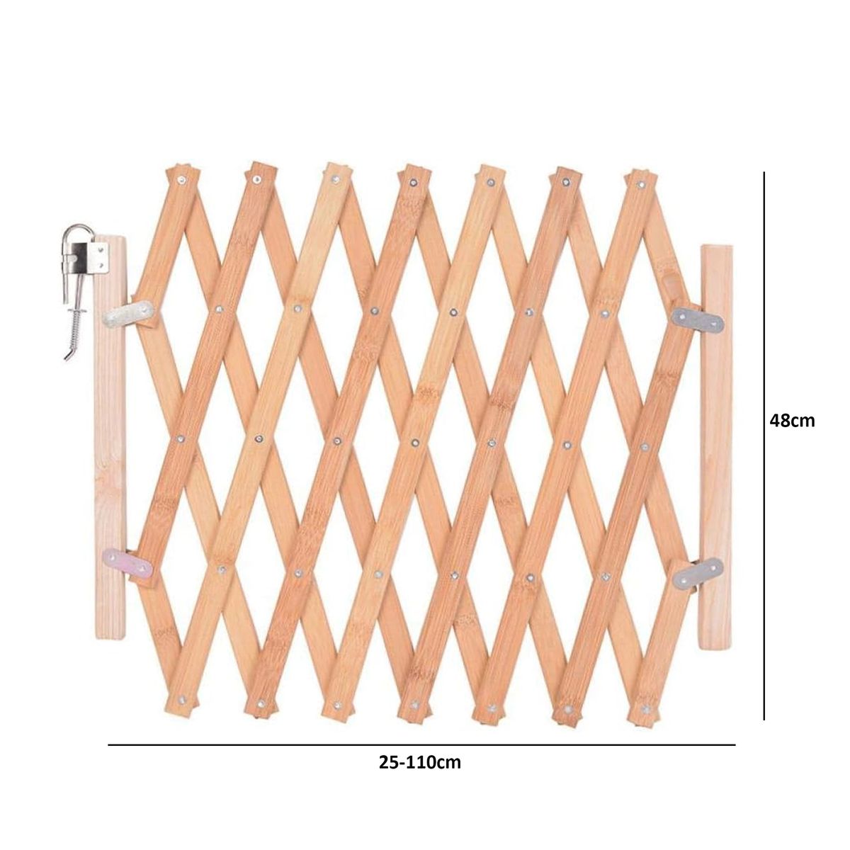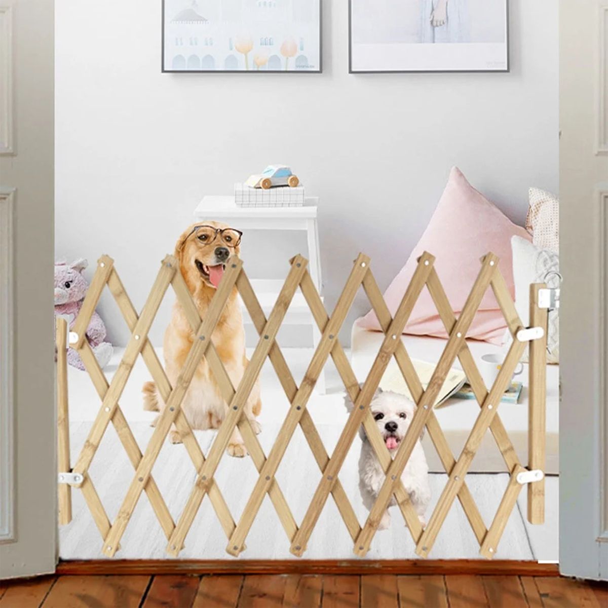 Our dog door allows easy operation in confined spaces. Easily open, close, expand and contract. The retractable isolation door is convenient for you to use and takes up less storage space. With a stable bracket, it is easy to install and disassemble, and the damage to the wall and door is extremely low. Made of natural bamboo, the natural color will perfectly match your furniture.