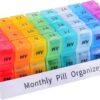 The translucent lid makes it easier to check your medications. 2 times a day, and one box a day. Each pill box has a different color and is printed with the week date and the AM/PM icon on the box to make it easy to distinguish.