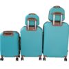 MOOI luggage set, ABS luggage, turquoise luggage, aqua green suitcases, 5-piece luggage set, spinner wheels, TSA locks, hard shell suitcase, durable luggage, travel luggage set, retractable handles, nested luggage, lightweight suitcases, secure travel bags, stylish luggage, dual-colored design, impact-resistant luggage, compact storage, modern travel luggage, functional suitcase set.