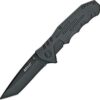 Black finish 440 Stainless Tanto blade with dual thumb studs
