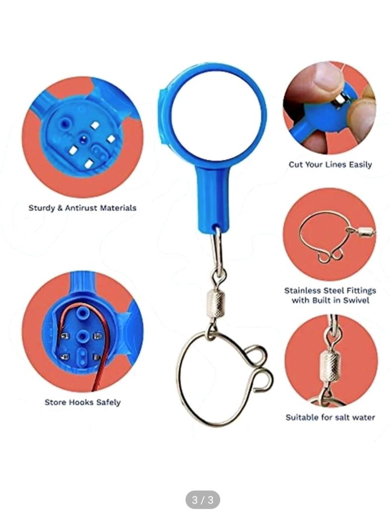 Since lots of twisting is usually involved in fishing knots, it has a built-in swivel speeding up that process. Each tool also comes with a stainless steel line cutter.